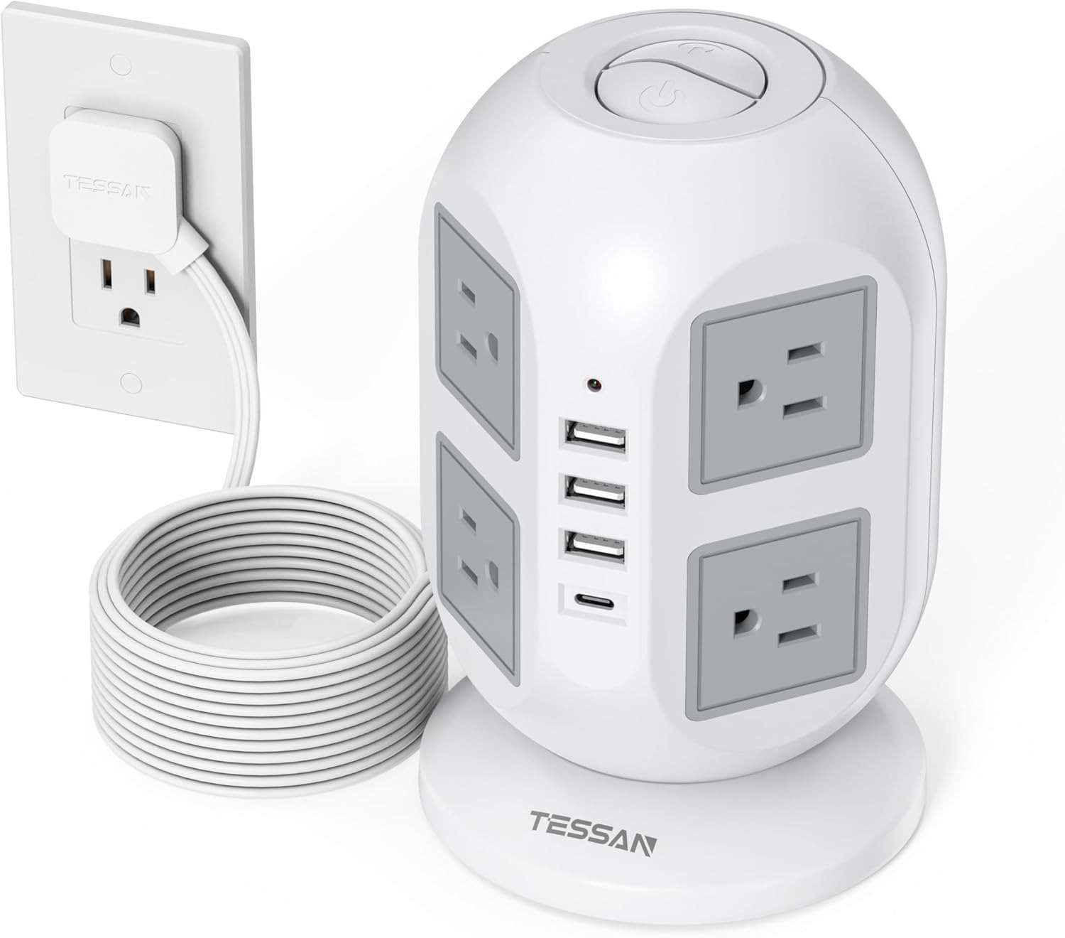 10-foot long cord offers flexibility for extended reach.Tower design with 8 outlets to accommodate large plugs.